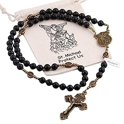 - HanlinCC Black Lave Stone Beads Saint Michael Catholic Rosary Necklace with Gift Bag, the Lava stone beads rosary with gift bag is a good gift to our friends, lover, and family on Easter, Thanksgiving, Christmas, birthday.
