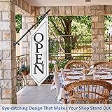 Heavy Duty Canvas Material: Made from thick, weather-resistant canvas with reinforced stitching, this open flag stands up to wind, rain, and sun, ideal for daily storefront and outdoor use. Complete with Pole & Bracket: Includes a flagpole kit and sturdy metal bracket for fast wall mounting. Easy to install, great for business owners. Double-Sided for Max Visibility: Bold “OPEN” lettering printed on both sides helps attract attention from any direction, increasing foot traffic to your shop, cafe, or retail store. Large 42x12 Inch Banner Size: Sized for visibility without blocking windows or doors. The 42x12 inch banner fits well on most storefronts, ensuring your message is always seen. For Indoor or Outdoor Display: Designed for year-round use in any setting whether mounted outside a boutique or inside a mall kiosk, it delivers reliable visibility and durability.