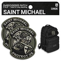 Set of two Saint Michael patches measuring 2.5x3 inches (6.5x7.5 cm), these patches are ideal for enhancing police gear, tactical backpack, or swat vest; perfect for law enforcement officers and military personnel Premium embroidery crafted with high-quality stitching, these Saint Michael religious patches feature intricate details and vibrant colors, ensuring a durable and visually striking addition to uniform, hat, or dog vest Secure hook backing equipped with a reliable hook-and-loop fastener, these patches attach effortlessly to any loop surface without the need for sewing; the included loop backing offers an optional sew-on feature for added security Durable construction designed with reinforced edges and robust stitching, these patches withstand harsh conditions and frequent use; suitable for a patch display board, tactical dog vest, or as a unique gift for colleagues in law enforcement Symbolic design featuring the revered Saint Michael motif, these crusader patches embody protection and valor, making them a meaningful addition to police uniform, swat gear, or military apparel