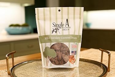 - Indulge in the perfect harmony of smooth milk chocolate and premium Georgia-grown pecans with Single A Pecans from Camilla, GA. These 12 oz packages of chocolate-covered pecans strike an irresistible balance between the rich, creamy sweetness of milk chocolate and the satisfying crunch of carefully selected pecans. Each pecan is generously enrobed in a layer of quality milk chocolate, creating a delightful treat that's perfect for snacking, sharing, or gifting. Whether you're treating yourself or looking for a taste of Southern luxury to share with others, these chocolate-covered pecans deliver a premium confectionery experience. The resealable package helps maintain freshness and makes it convenient to enjoy these delectable treats at your own pace. Proudly grown and produced in Georgia, these chocolate-covered pecans represent the finest in American confectionery craftsmanship.
