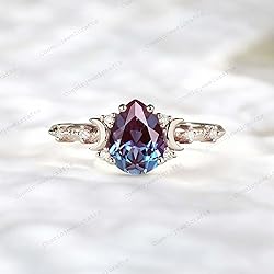⭐PRODUCT DETAILS :- Main Stone- Alexandrite (Lab Created) Stone Size- 7X5MM Stone color- Purple Stone Shape-Pear Stone Secondary Stone : CZ Diamond Secondary Stone Shape: Round Secondary Stone Color: Colourless Exquisite Vintage Design: This stunning Alexandrite bridal engagement ring features a timeless Art Deco design, beautifully crafted in 14K rose gold, making it an ideal symbol of love and commitment. Elegant June Birthstone: Set with a genuine Alexandrite gemstone, the June birthstone, known for its enchanting color-changing properties, this ring makes a perfect gift for those born in June or as a unique engagement ring. Sparkling Diamond Accents: Enhance the beauty of your special day with the intricate diamond accents that add a touch of brilliance and elegance to the moon-inspired design. Durable and Timeless: Made with 14K rose gold for lasting beauty and strength, ensuring this piece will be cherished for years to come, whether as a wedding band, promise ring, or engagement ring. Perfect Gift for Her: This sophisticated vintage-style ring is a wonderful gift for your wife, fiancée, or loved one on any occasion, including anniversaries, birthdays, or as a romantic engagement surprise.