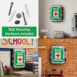 - Keep your facility or home prepared with this large cabinet-style first aid kit designed for business, office, school, warehouse, and facility safety. Built for easy access in emergencies, this wall mount first aid kit can be quickly seen and reached by employees, customers, or visitors. The durable hard case first aid cabinet includes tilting shelves to keep items organized and comes with mounting hardware included, making installation simple in any workplace or job site environment. While designed for wall mounting, the cabinet can also be removed and stored in a cabinet or transported when needed, offering flexibility for different environments. This workplace first aid kit is stocked with a diverse range of emergency medical supplies that cover common injuries and minor emergencies. Inside you’ll find adhesive bandages, gauze pads, wound dressings, scissors, tape, gloves, triangular bandages, prep pads, conforming bandages, and CPR face masks. With a broad selection of OSHA compliant first aid supplies, this kit helps businesses reduce risk and stay prepared for cuts, scrapes, burns, or other minor workplace accidents. Ideal for schools, daycares, offices, factories, warehouses, retail stores, service businesses, and other facilities, this OSHA compliant first aid kit cabinet is a smart investment for safety and compliance. The large size ensures there are enough supplies to serve multiple people, making it a reliable option for groups, teams, and organizations of all sizes. Portable and lightweight, this kit is not only practical for mounting but also easy to move when needed. As an added benefit, it is FSA and HSA eligible, making it a cost-effective solution for businesses focused on safety and preparedness. Whether you are searching for an office first aid cabinet, a business first aid kit wall mount, or a workplace emergency medical kit, this cabinet delivers durability, organization, and the comprehensive supplies your facility needs.