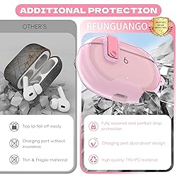 RFUNGUANGO Transparent Protective Case for New Beats Studio Buds + (2023) / Beats Studio Buds (2021), Security Lock for Beats Studio Buds Plus Protective Case with Cleaning Kit/Keychain - Pink