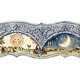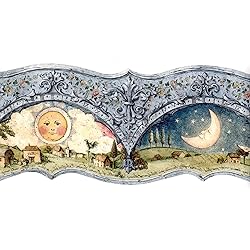 - Bring a touch of celestial wonder to your home with this whimsical sun and moon wallpaper border. Featuring a captivating scalloped design, the pattern showcases a radiant sun and serene moon set amidst intricate floral accents and architectural details. The soft hues and delicate craftsmanship create a magical atmosphere, making it a perfect choice for bedrooms, nurseries, or any room where you want to inspire a sense of peace and imagination. Made with premium, durable materials, this wallpaper border ensures long-lasting beauty. Its pre-pasted backing makes installation effortless, while the removable design allows for easy updates without damaging your wall. With a roll size of 15 ft long and 8 in wide, it offers ample coverage for your decorating needs. Transform your walls with this delightful celestial design and create a serene, dreamy vibe in your wall decor style.