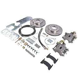 - Part Number 91664083 Brake Booster Included No Brake Hose Material Rubber Brake Hoses Included Yes Caliper Pistons 1 Front Rotor Diameter 11 Inch Hardware and Instructions Included Disc Brake Stopping Power At Nearly The Same Cost As Rebuilding/Replacing Drum Brakes 11" diameter,1" thick vented cast iron rotors dissipate heat than drum brakes Use with 15" or disc brake-style wheels Easy Bolt-On Installation W/ Included Instruction Sheet Heavy Steel Mounting Brackets Frame Tabs and Clips For Hoses Installation Tips Brake rotor has a 2.78" center hole and works with axle shaft flanges no than 6-1/8" diameter. If your axle shaft flange exceeds that diameter,you will need machine the flange to decrease the diameter Minimum Recommended Wheel Diameter 15 Inch Rotor Shape Round Replacement for Ford 9 Inch and 8 Inch Housings This rear disc brake kit Replacement for Ford 8” axles, as well as passenger car Ford 9 inch axle housings with “big bearing” ends (3.150” O.D. bearing, found on passenger cars from 1974-79).