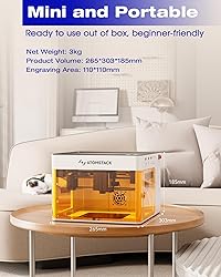 ▶【Versatile Performance】The P1 Laser Engraver integrates laser engraving and cutting functions. Equipped with a 5000mW Class 1 diode blue laser, it can process a wide variety of materials for different projects. It can cut 3mm basswood plywood and 3mm acrylic in a single pass. Moreover, it can engrave materials like wood, leather, bamboo, coated ceramic, and stainless steel (Use a marker to blacken the stainless steel surface first to create a non-reflective layer for better engraving results). ▶【User-Friendly Software】For PC users, aside from LightBurn and LaserGRBL, our exclusive, free “AtomStack Studio” software streamlines operations. It comes with a material library and automatic accessory recognition, adding a lot of convenience. In addition, smartphone users can operate the P1 via our free “AtomStack” App. Whether you're new to this or not, our software and App make it a breeze to start DIY projects and have a great time! ▶【High-Precision and Speed】Notably, we've given the P1 laser engraver a brand-new optimization by integrating CoreXY structure and a dual-motor drive. These features guarantee high-speed engraving, with a positioning accuracy of 0.1mm and a maximum engraving speed of 10000 mm/min. With such capabilities, it can effortlessly tackle all sorts of creative tasks. ▶【Mini Portable Design】The P1 Laser Cutting Machine measures 265*303*185mm and weighs about 3kg, making it extremely portable. Despite its compact size, it has a relatively large working area of 110*110mm, allowing for easy use in various locations. If you need to engrave a large object, simply remove the base and place the object beneath the machine. Keep in mind, though, that the actual engraving range stays within 110*110mm. ▶【Safe and Certified】With Class 1 laser certification, limit switches, an all-enclosed design, and a laser filter window, the P1 laser cutter ensures a safe working environment. Furthermore, it comes with a built-in fixed-focus rod for quick focus adjustment. On top of that, the tilt alarm and flame detection features offer extra safety.