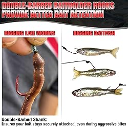 Secure Bait Holding: Double-barbed shank keeps bait firmly in place, ensuring it stays on during aggressive strikes, a critical feature for anglers using live bait. Versatile Sizes: Choose from sizes 8/0 to #8 for various fish species, covering needs from large game fish to smaller panfish, enhancing market reach. Durable Material: High-carbon steel construction offers strength and longevity, suitable for both freshwater and saltwater, inferred from common industry standards. Sharp Points: Ultra-sharp points ensure quick penetration and secure hook sets, increasing catch rates, a common selling point in competitor listings. Color Choices: Available in black and red to suit preferences, with red potentially attracting fish in certain conditions.