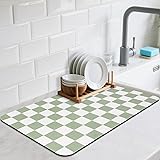 CooRug Checkered Dish Drying Mat for Kitchen Counter, Absorbent Non-Slip Coffee Mat, Heat Resistant Mat for Countertops Coffee Bar Decor 12" x 20" Green