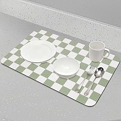 Excellent Absorption: CooRug checkered dish drying mat is made of high-quality PU material, which can absorb water quickly and effectively. Keep your countertops clean and tidy. Easy to Clean: The surface is easy to wipe to quickly remove grease and stains. For a more thorough cleaning, you can choose to hand wash with soap. Eco-friendly: Our products are made of recyclable materials to ensure long-term safety and protect the health of you and your family. Widely Used: It can be used as dish drying mat for kitchen counter, coffee bar accessories, placemats, dish racks, countertops and more. Checkered Design: This Checkered mats feature a classic checkered design with vibrant colors, adding a touch of color and beauty to your kitchen countertops and coffee bar.