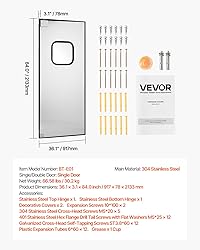 VEVOR Traffic Swing Door, Single Panel Fits Door Opening 36" W x 84" H, Stainless Steel Commercial Swinging Doors with Hardware & Accessories, Ideal for Residential Use, Durable & Easy to Install