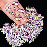 SWTHONY 72pcs 9 x 18mm AB Horse Eye Shaped Sew On Rhinestones for Crafting, Crystal Glass Gems Silver Plated Flatback Jewels with 2 Holes for Crafts Clothes Fabric