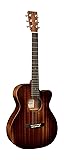 - The 000C Junior E StreetMaster is your full-scale companion, built for players who love the look of a well-worn guitar that’s already been through a few gigs—and is ready for more. Whether you're writing at home, jamming backstage, or taking your music on the road, this compact yet powerful acoustic-electric is always up for the ride. Its solid sapele body delivers warm mids, punchy lows, and clear trebles, while scalloped spruce X-bracing enhances resonance and projection for a rich, dynamic sound. The beautifully distressed satin finish gives it the character of a guitar that’s been played hard and loved deeply, with the reliability to keep going for years to come. The 24.9" scale length offers a familiar feel, while the Performing Artist neck profile with a high-performance taper and a cutaway allow for smooth playability across the fretboard. A gently beveled fingerboard edge makes long sessions effortless, and when it’s time to plug in, Martin E1 electronics—with a built-in tuner—keep your tone dialed in. Complete with a durable softshell case, the 000C Junior E StreetMaster is more than a guitar—it’s a road-tested companion that’s ready for wherever the music takes you.