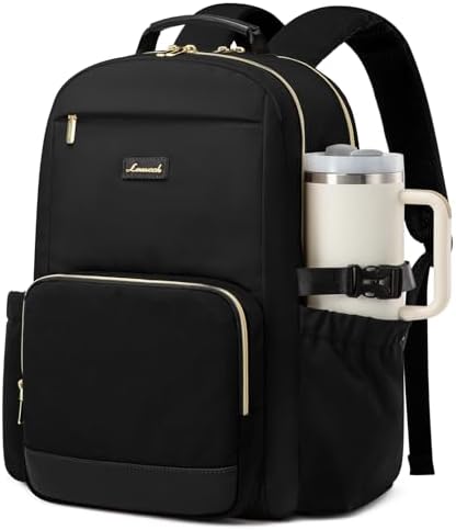 LOVEVOOK Laptop Backpack for Women with Pouch Pocket for Large Capacity Cup,18 Inch Laptop Computer Bag Travel Backpack Purse,Waterproof Work Business Backpack College Teacher Bags,Black