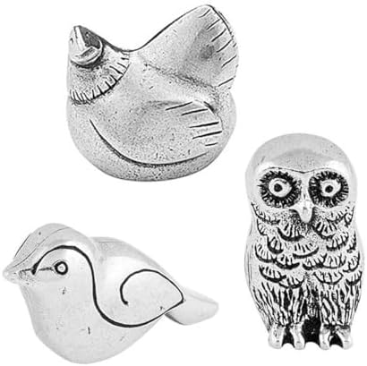 Bring the beauty of birds into your home with the Feathered Friends Netsuke Set by Danforth Pewter. This set features three handcrafted bird figurines. Handcast in pewter and designed to capture the delicate charm of nature's winged creatures. Whether you're a birdwatcher, nature lover, or someone who enjoys collectible animal miniatures, this set offers a peaceful and elegant way to decorate your space. Display them proudly or give them as a meaningful gift that will last a lifetime. Set includes one each of Chicken, Owl, and Bird. Packed in a muslin bag for safekeeping or gift-giving.