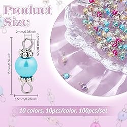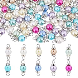 Elegant Pearl Design: Whether for necklaces, earrings, or bracelets, these pendants add a soft, sophisticated charm to any accessory, timeless and versatile. Size Information: You will receive 100pcs glass pearl connector charms in 10 colors, each color 10pcs, it is about 15mm long, 6.5mm in diameter, hole is about 2x2.5mm, enough for your daily use. Glass Faux Pearl with natural luster: Made of glass material, smooth and glossy, the imitation pearls shine like real ones, while being more durable and avoid to discoloration. Lightweight and Easy to Use: Comes with 2 loops for quick attachment to chains, hooks, or findings, saving time and effort in your crafting process. DIY Crafts: Ideal for making jewelry, bridal accessories, bridesmaid gifts, bag charms, wedding designs or garment embellishments.