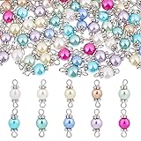 HOBBIESAY 100Pcs 10 Colors Glass Pearl Charms Pearlized Pearl Connector Pendants Elegant Faux Round Pearls Charms Colorful Pearls Link Pendant with Double Loops for Jewelry Making Hole: 2x2.5mm