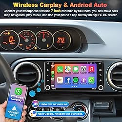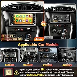 【Applicable Models】The Toyota car stereo is compatible with Scion FR-S 2013-2016,tC 2005-2016, xB 2004-2015, xD 2008-2014, Please check the year, dimensions and shape of the center console of your vehicles before purchasing. If you are not sure, you can send messages or picture to us, we will give you advice. 【Android 13 Syestem and 4GB+64GB】Our Android 13.0 car audio receivers with 7 inch IPS Touch Screen built-in 4G RAM + 64G ROM system, ensures smooth operation and faster response, 64 GB ROM for more apps installed. WiFI, Network, On-line surfing Available. After connected to WiFi or personal hotspot, this Car Stereo allows you install android Apps from Application Store. You are driving with a smart Car stereo 【Wireless Carplay and Android Auto】This Toyota Upgrade Replacement is compatible with wireless/wire apple CarPlay and Android Auto, you can make calls hands-free with the help of Siri or Goo-gle assistance, easy to get phone contacts, emails, notifications, map navigation, music, videos and more. It means that you can focus more on road safety while driving! 【GPS Navigation and Wifi/Hotspot Connection】The GPS Navigation Head Unit built-in GPS module and external GPS antenna for online or offline map navigation. Offline map data preloaded, ready to use after installation,includes 2D & 3D routes plus building views major cities, Green Routing, fuel tracker. this car radio also supports WIFI hotspot connection, you can easily access and download online navigation APPs, Instagram, Facebook, TikTok, etc on Play store. 【Rearview Camera Input】this toyota car audio with backup camera,ready to offer 170°viewing angle backup, allowing you to see hazards such as pets, children, or mailboxes that behind your car. When you put on reverse gear, the screen of the Lexus stereo will automatically switch to the reverse interface.Very safe and convenient when you are reversing even in a bad weather.Front View available but camera not included. 【Bluetooth Function& Steering Wheel Control】This Bluetooth5.2 radio supports answering/ making Bluetooth phone calls with hands-free. The built-in microphone picks up your voice and your car speaker can help you hear the person on the other side clearly. Use the steering wheel buttons to control the car audio, which is more convenient for operation and safer for driving. 【Multi EQ Settings & FM/RDS Radio】Preset Multi EQ Settings to meet your sound demand, adjustable volume/fader/balance/treble/bass control, build your own sound system easily. This multimedia player compatible with all format, with the built-in 4*50W amplification,make your car become a moveable great live sound cinema.Build in FM/RDS, automotive level chipset provides the best radio signal reception performance,let’s enjoy the best FM station and and drive with the rhythm of the city.