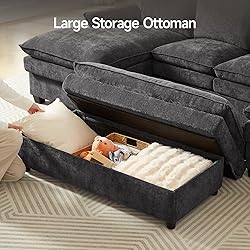 FLEXIBLE COMBINATION SECTIONAL SOFA: Maximize your space with this versatile modular sectional sofa, which features an oversized movable storage ottoman. When paired with the modular sofa, the U-shaped configuration can be converted into a sofa bed, perfect for stashing blankets, pillows, or kids' toys! It can be a perfect match for your living room, bedroom, home office, etc. SPACIOUS FURNITURE: The ONBRILL modular sofa features a sturdy solid wood frame and is upholstered in high-quality chenille fabric, providing a plush feel and a rich appearance.Comfy cloud couch features 45 inch deep seating area, soft pillows and thick double layer seat cushions, can meet your resting needs easily ERGONOMIC DESIGN:The backrest is designed to align with the natural curve of your spine, providing excellent support. It offers true enveloping comfort, making it ideal for home offices, gaming, or lounging. This backrest delivers lasting support without compromising on style. DUAL CHARGING PORTS: The armrests of this home sofa are manually adjustable to multiple angles, improving comfort for various sitting and reclining positions.Plus USB and Type-C charging ports,allowing for seamless and hassle-free use of your computer, cell phone, or other electronic devices, whether you're lying down or sitting up. EASY TO ASSEMBLE: The modular sofa is delivered in three boxes, which may arrive on different dates. Assembly is required, but don't worry—an instruction manual and all necessary tools are included. This sectional sofa is perfect for any space, whether it's a living room, apartment, loft, or office. If you have any questions, please feel free to reach out to us, and we will respond within 24 hours.