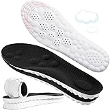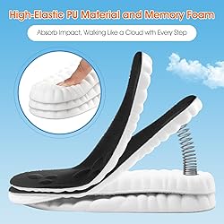 Cloud-like comfort: Our cloud sole are made of high-quality high-elastic PU material and memory foam, which brings you unparalleled comfort. The thickened heel pad is specially designed to absorb impact, allowing you to stand or walk for a long time with ease. This pad can effectively reduce the pressure on your feet and legs, relieve fatigue, and let you experience the feeling of walking like a cloud with every step you take. Advanced 4D Breathability: Our insoles feature cutting-edge 4D Cloud technology with a unique honeycomb perforation design that enhances air circulation and moisture management. Quick-drying natural fabric with ventilation holes ensures your feet stay fresh all day, effectively wicking away sweat and preventing bad odors. Even during intense activities, providing lasting comfort and preventing stuffiness. Targeted Arch Support: Our ergonomically designed insoles provide targeted support for the arch of the foot. The perfect fit helps relieve discomfort caused by conditions such as plantar fasciitis, flat feet and bunions. Balances the force structure of the foot, helps correct abnormal walking patterns and relieves foot pain. By fitting perfectly and providing necessary support, these insoles can improve your overall comfort and foot health. Shock Absorption and Stability: Our insoles feature advanced shock absorption technology and a U-shaped heel cup, providing excellent stability and a perfect fit. High-resilience foam and heel design work together to absorb the impact of each step, significantly reducing pressure on the feet and knees, providing continuous support and relieving foot fatigue. This stability and cushioning make every movement more comfortable and gentle. Customizable Fit for Versatile Use: Get the perfect fit with our customizable, slim fit design. The insoles can be easily adjusted to match the exact size of your shoe, providing a personalized and comfortable fit. These insoles are suitable for a variety of footwear, including sneakers, running shoes, boots, and dress shoes, providing versatile comfort and support for any activity. Note: The indicated sizes of the insoles are measured manually and may have slight deviations. When trimming, please measure your foot length accurately to ensure the best fit.
