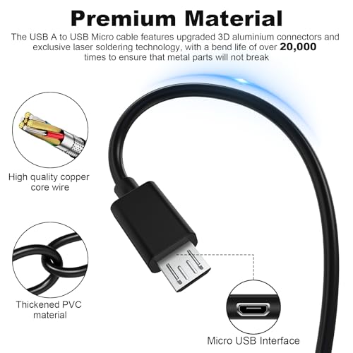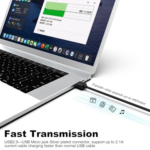 - Fast Charging: USB2.0 ↔ USB Micro jack silver-plated connector, thickened PVC cable housing and high quality copper core, support up to 2.1 A current, the cable charges faster than regular USB cables and transfers data at speeds up to 480 Mbps