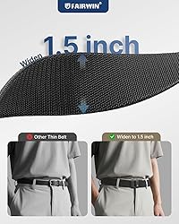 No Slipping Automatic Ratchet Buckle: Experience the convenience of our ratchet belt with an automatic buckle. Simply slide the belt into the buckle and pull it through; the buckle automatically locks the belt in place, eliminating the need for complex adjustments. We have resolved the issue of the buckle sliding automatically, ensuring a stable and reliable fit throughout use. Enjoy a worry-free experience with Fairwin's automatic ratchet belt, designed to make your daily life more effortless Nylon Ratchet Belt Size: L size belt suits for waist size 42"-46", the belt's length 53 inch, it fits all jeans, casual pants, shorts, tactical pant, business pants etc High Strength Stretch Nylon Belt: Made of comfortable and breathable stretch nylon. Your waist can breathe freely and reduce stress in life with this casual belt. High stretch belt can make you more comfortable to wear in everyday use and get rid of stuffy leather. This is a necessary belt the escort your happy life Full Occasions Support: The nylon belt is not only a fashion web belt, but also a awesome everyday belt for men. It’s multiple used for outdoor activities such as camping, hiking, cycling, fishing, traveling, field training. The ratchet belt was elegantly designed for jeans, casual pants, suit trouser and of course for a professional look even you’ve a business meetin Gift for Men: Luxury packaging comes as standard! A fashion design belt will meet almost any occasion and outfit, which is also the utmost suitable gift for men.Choosing Fairwin belt as gift for men's birthday, Valentine's Day, Father's Day, Christmas gift, and New Year would be a good idea