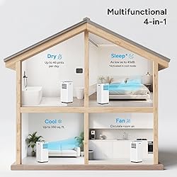 [True Cooling Power for Your Room] Cools spaces up to 350 sq. ft. with adjustable temperatures from 61~90℉ (16~32℃) and high/low cooling modes. More than just air circulation — this portable AC delivers real, refreshing cooling. Perfect for bedrooms, apartments, or small living rooms. Stay comfortable through the summer heatwave and sleep soundly! [4-in-1 Versatile AC Unit] Combines cooling, fan, dehumidifier, and sleep modes in one portable ac unit — a cost-effective solution for year-round comfort. Activate sleep mode while cooling to reduce noise for a more restful night. Dry mode removes up to 46 pints (22L) of moisture per day to keep your space fresh and comfortable. [DIY Installation] No professionals or tools needed — set up your portable air conditioner easily with the included window sealing kit (fits windows 25.6” to 67” wide) and a flexible exhaust hose (extends up to 63”). Compatible with both horizontal and vertical sliding windows. [Cool Every Room You Need] Four smooth-rolling casters and side handles make it easy to move the unit from room to room. The removable, washable mesh helps keep the air clean by trapping dust and pet dander — for healthier, fresher cooling wherever you need it. [Easy to Use] This air conditioner features an intuitive touch panel with LED display and a remote control (AAA batteries not included), making it easy to adjust temperature, fan speed, and more. The 1–24 hour timer lets you set automatic on/off times, so your space is always cool when you need it.