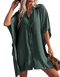 Ekouaer Women's Swimsuit Cover Up 3/4 Sleeve Beachwear Bikini Coverups Button Down Oversized Cover Up Shirt S-3XL