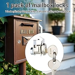 HIGH QUALITY:Constructed from robust zinc-alloy and plated with a Nickel finish. This robust combination effectively resists rust and corrosion, ensuring long-term reliability and a sleek appearance despite constant exposure to the elements. COMPATIBILITY:Engineered for a perfect fit on most standard mailboxes. The inclusion of 5 adjustable locking tabs ensures a seamless and secure replacement for various models, eliminating the hassle of compatibility issues. PROTECTION:Effortlessly upgrade your mailbox protection. This sturdy lock prevents theft and unauthorized access, safeguarding your sensitive mail, packages, and personal documents from potential threats. EASY INSTALL:Includes everything for a quick DIY installation: 1 lock cylinder, 5 locking tabs, and 2 keys. You can complete the replacement in just minutes using basic tools, saving you the cost and time of hiring a locksmith. PRODUCT INCLUDES:1 mailbox lock includes 1 anti-slip piece, 2 keys, 5 shape lock tabs and 1 nut