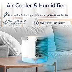 Compact Air Cooler For Personal Spaces: The Ontel Arctic Air Turbo Chill evaporative air cooler helps cool & humidify your space using Hydro-Chill technology. Enjoy chill air in bedrooms, offices, small living areas, or practically anywhere indoors** Powerful Cooling With 4-Speed & Mist Control: This portable fan delivers personalized comfort with four speeds (Low, Medium, High, & Turbo) and easy mist control. Helps stay cool while working, relaxing, or sleeping through warm indoor days & night Focused Quiet Airflow All Night: Enjoy up to 8 hrs of cooling per fill* with ultra-quiet operation. The quick-view window lets you monitor water levels, while the adjustable grill and wide-angle oscillation let you direct airflow where you need it Simple, Efficient, & Easy To Use: Enjoy energy-efficient operation*** with easy touch-button controls and convenient power indicators. A 7-color LED night light lets you set the mood, and this portable air cooler is ETL-listed Portable, Compact, & Lightwieght: Sleek, compact build (6.9"D x 5.5"W x 7.1"H) and a built-in handle make this air cooler easy to move between desks, nightstands, and counters in dorms, kitchens, or bedrooms for convenient daily use *Run time will vary depending on speed setting, room temperature levels, & room humidity levels. **Indoor Use Only *** Uses less electricity than a 6,000 BTU AC.