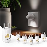 AUTOMATIC OPERATION: Features smart dusk-to-dawn sensor that automatically turns the nightlight on when dark and off when bright, saving energy BRIGHT ILLUMINATION: Provides 200 lumens of 5000K daylight white light, equivalent to a 20W traditional bulb, perfect for nighttime visibility VERSATILE DESIGN: 360-degree adjustable head allows precise direction of light where needed, while compact size keeps outlets accessible MULTI-ROOM VALUE: Pack of 6 nightlights enables comprehensive home lighting solution for bedrooms, bathrooms, hallways, and stairs ENERGY EFFICIENT: LED technology ensures long-lasting performance while maintaining low power consumption, no bulb replacement needed