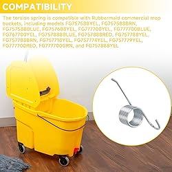Compatibility:The mop bucket wringer spring replacement is compatible with Rubbermaid commercial mop buckets, including models FG757588YEL, FG757588BRN, FG757588BLUE, FG757688YEL, FG777700YEL, FG777700BLUE, FG777700RED, FG777700GRN, FG767700YEL, FG757888BLUE, FG757888RED, FG757888YEL, FG757788YEL, FG757788BRN, FG757718YEL, FG757774YEL, FG757779YEL Durable Material:Features a large 8-loop torsion spring made from quality alloy steel, offering tensile strength and corrosion resistance Optimized Design:This compatible with rubbermaid mop bucket wringer spring replacement parts design takes long-term stability into consideration.Even with frequent operation in commercial environments, the spring maintains stable elasticity and performance Easy Installation:Simply use common hand tools to remove the old commercial mop bucket water side-press wringer torsion springs, install the new spring in the correct orientation, and ensure both ends are securely connected to the fixed points Reduced Maintenance:The durability and stability of this spring reduce replacement frequency and maintenance, helping the mop bucket operate reliably in commercial environments
