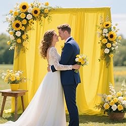 Package Include: 2Pcs 5FT Wide X 10FT Height polyester photography backdrop drapes, total 10FT Wide X 10FT Height. Tips: ONLY the backdrop curtains, no include a stand. Polyester Material: The yellow backdrop curtains are made of 100% high quality polyester fabric, which can make the backdrop durable, soft and smooth. The material can keeping the natural droop when falls on the floor to perfect for various theme events. Easy to Hang: The photography backdrop is easy to install on any standard rods because of the 4-inch wide rod pocket on the top. And you can tighten or stretch the backdrop drapes according to the required width. Various Occasions: These Backdrop Curtains can be used for wedding, birthday, party, photography, receptions, catered presentations, bridal and baby shower, home decorations, celebration, graduation, ceremony, anniversary, the important events and so on. Also perfect for daily use, various festivals, indoors and outdoors decorations. Care Instructions: This backdrop curtain is easy to clean. It is recommended to hand or machine washed, do not bleach, can be reused.