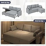 【4.4 Cu.Ft Storage Chaise】Sectional sleeper sofa pull out couch bed offers a spacious built-in storage compartment with a 4.4 cu.ft volume for storing up to 10 small pillows, blankets, or other ite 【Comfy Pull out Couch】Our futon sleeper sofa is made of breathable linen fabric, providing a cozy seating experience with a plush 23" seating depth, and meeting your needs of watching TV, reading books, and taking a nap 【Convertible Sofa Bed】The sleeper sofa seamlessly transitions from a sofa chair to a queen-sized bed with a built-in pullout, providing comfort and convenience for overnight guests. Its sleek design and versatility make it perfect for Living room 【Charging & Storage Features】The 3-in-1 sofa cama comes with handy features like a USB port, cup holders, side storage pockets and etc. Charge your devices, keep your drinks safe, and store items like remotes and books effortlessly 【Satisfaction Support】Pull out couch bed come with 24-hour customer service support, so pls reach out with any questions, and enjoy a 1-year support for added peace of mind