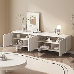 modern simple design:this simple white TV stand is new design,Adds a modern touch to most home decorations. large storage capacity: - The storage space is comprised of four units with a sliding slatted door for concealing media devices when not in use. Perfect for the transitional needs of the modern home. Durable and sturdy: Crafted with a sturdy frame and premium materials, ensures long-lasting durability.4 strong load-bearing legs stand the tv cabinet stable,and protect the tv stand not shake; easy to assemble:the tv stand is packed into cartons with foam, The installation instructions will come with the product.just please follow it. Professional after-sales service:If you have any product quality or installation issues, please do not hesitate to communicate with us at any time. We will solve your problems with professional and customer first service awareness.