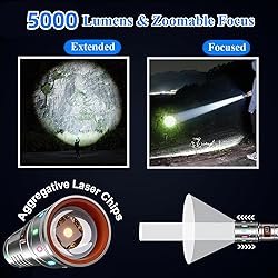 HIGH BRIGHTNESS: Although the torch is only 5.5 inches long and weighs 0.3 pounds, our rechargeable torch delivers 5,000 lumens. Consistent performance and low power consumption provide an even, high-brightness beam and a wider range of illumination for your daily needs. 5 LIGHTING MODES, VARIABLE FOCUS: One-touch control of 5 lighting modes: high/low/strobe/COB white light and red/blue flash. The variable focus design allows you to adjust the focal length as needed, giving you the freedom to choose between a spotlight or a floodlight for long-distance or large-area lighting. USB C charging cable and data cable included: the built-in battery of 1200 mAh lasts up to 7-8 hours of normal use. You can charge the torch directly with the included USB C charging cable. DURABLE: The torch case is made of high quality aluminium alloy with excellent hardness, abrasion resistance and drop resistance. Pocket design is easy to carry, can be put into handbag, backpack or survival kit. Multiple Uses: The kit includes: 1*Rechargeable Flashlight, 1*USB Cable. The lightweight and practical flashlight can be widely used for daily lighting, power outages, emergencies, etc. It can also be used for outdoor such as dog walking, hiking, running