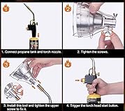 - Create a Perfect Searing in Seconds Converting the kitchen torch's flame into radiant heat, spreading the flame evenly. this kitchen torch which creates the perfect searing temperature and provides an even grill for meats and other foods. Recommended Torches and Tanks A. Compatible with bernzomatic TS4000. B. Compatible with bernzomatic TS8000( Recommendation). C. The cooking torch attachment requires a 16.4 oz “camping” propane gas cylinder tank. Included in purchase | (1) kitchen torch*1, (1) adjustment screw pre-attached to the sleeve adapter*2, (1) aluminum sleeve adapter*1, (1) user manual*1.