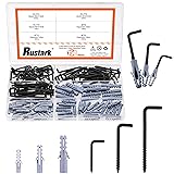Rustark 150Pcs 3 Sizes Black Square Bend Hook Kit with Expansion Tubes L Shaped Screw in Hooks Spiral in Square Bend Hook for Hanging Workplace Home Office