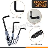 【 What You Get 】 --- You'll receive a 150pcs 3 sizes black square bend hook kit with expansion tubes. The square bend hook kit includes 15pcs #8x40 expansion tubes, 35pcs #5x25 expansion tubes, 25pcs #6x30 expansion tubes, 35pcs M2.8x35mm square bend hooks, 15pcs M3.7x70mm square bend hooks, 25pcs M3.8x50mm square bend hooks, in total 150pcs. Sufficient quantity and different sizes can meet your different needs in daily life. 【 Durable & Reliable 】 --- These l shaped screws hooks are made of high quality carbon steel with black finish which are not easy to form and break, wear-resistant, corrosion-resistant, strong and durable with long-term service life. These l shaped screws hooks also have superior rust resistance and strong holding performance, which can be used in many extreme environment, such as high temperature, high humidity. 【 Square Bend & Self-Tapping Design】 --- These l shaped screws hooks feature self-tapping screw tip design, which can help you easy and quick to screw into all types of wood materials by simply pushing. And the square bend hook design can provide more stability and weight-bearing capacity compared with others hooks. 【 Easy To Use 】 --- The included expansion tube can help you to lock and install the square bend screw hooks firmly and not easy to fall off. These l shape screw hooks ensures easy installation without the need for pre-drilling. You just push the square shoulder hook in material, and then applying hand pressure while turning the hook clockwise to begin screwing in wood. 【 Wide Application 】 --- These square bend screw hooks are widely used in wood, hand work, home, workplace, office, indoor and outdoor applications. Suitable for hanging light weight items firmly, such as lamps, curtains, ropes, chains, cups, feeders, flower pots, dish towels, pictures, paintings, coats, hats, plants, keys, etc.
