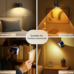 Long-Lasting Cordless Freedom: Enjoy up to 60 hours of warm white (3000K) illumination on a single charge! This battery-powered wall lamp eliminates cords and outlets, offering ultimate placement flexibility in any room USB-C charging included Effortless 360° Full Angle Adjustment: Easily rotate and tilt the lamp head to precisely direct light exactly where you need it - upwards for ambient glow, downwards for task lighting, or sideways to highlight decor. Perfect for reading nooks or accent walls Customizable 3-Level Brightness: Tailor the ambiance with simple touch control. Choose from low (warm nightlight), medium (relaxing mood), to high (bright task lighting) to suit any activity or time of day Tool-Free Magnetic Mounting & Removal: Installs securely in seconds with the powerful magnetic base and included adhesive plate (or optional screw mounts). Effortlessly detach for charging or repositioning - no tools required Versatile & Modern Design: Sleek, minimalist profile complements any decor. Ideal for illuminating hallways, staircases, bedrooms (as bedside light), closets, garages, entryways, or adding accent lighting to living spaces. Weather-resistant for covered outdoor use like patios