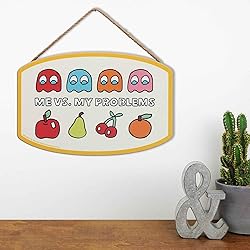 Pac-Man Me Vs. My Problems Hanging Wood Wall Decor - Fun Pac-Man Sign for Game Room or Office
