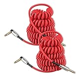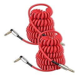 Augioth Curly Guitar Cable 10ft 2Pack, Coil Electric Instrument Guitar Bass Cord AMP Lead 1/4 Straight to Angled Red