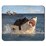 Foritho Funny Shark Mouse Pad, Funny Black Cat Attack Shark Mouse Pads for Wireless Mouse Computers Laptop Desk Accessories, Black Cat Office Supplies, 9.5x7.9 Inch
