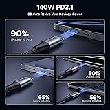 UGREEN 140W USB C Cable, 5FT 2-in-1 USB C to USB C Cable, Fast Charging for iPhone 17/17 Pro Max/16/15 Series, Galaxy S25/S24/S23 Series, MacBook Air/Pro, iPad Pro/Air, Steam Deck, and More