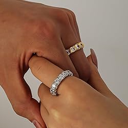 - Add elegance to your jewelry collection with the Leaocean 18K Gold Plated Eternity Band Rings, now available in 4mm and 6mm width options. Whether you prefer a dainty, minimalist look or want something bolder, you can pick the perfect width to match your style—or stack both for a layered, on-trend statement. Each ring is encrusted with brilliant simulated CZ diamonds that sparkle like real gems. The rings are plated in rich 18K gold over a durable base, offering both beauty and longevity. Perfect as a gift or a self-love treat, these bands are ideal for weddings, engagements, promises, or daily wear.