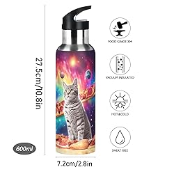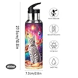 Cat Pizza Planets Space Water Bottle with Straw Lid Kids Insulated Stainless Steel Water Flask Sports, 20 Oz Hot Cold