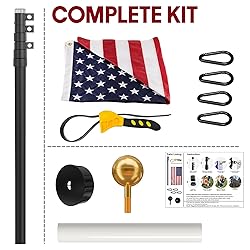 Smooth & Secure Telescoping System:Raise or lower your flag with ease. Each section glides smoothly and locks firmly into place — no slipping, no collapsing. Built for long-term use, and includes a dedicated wrench to make adjustments even easier when needed. Heavy-Duty & Rust-Resistant:Crafted from 14-gauge aluminum — thicker and more durable than typical 15/16-gauge poles. Perfect for outdoor use, it stands up to wind, rain, and sun without rusting or bending. Rustproof & Long-Lasting Finish:This in-ground flag pole is built from corrosion-resistant aluminum with a fade-proof coating, designed to withstand rain, snow, and sun for over 10 years. Complete Kit for Easy Setup: Includes all essential accessories plus a 3x5 FT American flag. Installs quickly in your yard or at the campsite — comes with a specialized wrench for easy locking and unlocking. Tangle-Free Dual Flag Design:Fly one or two flags at once — the anti-wrap design keeps them flowing freely, even in strong wind. Patriotic Gift for Him: A meaningful gift for fathers, husbands, or veterans—perfect for Memorial Day, Veterans Day, Father’s Day, Independence Day, or any patriotic occasion that honors service and pride.