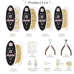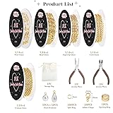 - Ecoofor 18K Gold Chain for Jewelry Making Kit - 16.6ft 5 Rolls DIY Bracelet & Necklace Chains with 136 Pendants, Jump Rings, Lobster Clasps & Jewelry Pliers (Charm Making Kit Included) + Gift Box
