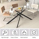 Binrrio 60" Rectangular Glass Dining Table Modern Kitchen Glass Top Table for 6 with Black Metal Legs, Clear Dining Table Kitchen Table for Home Office Dining Room