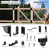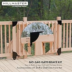 【Sliding Gate Kit with Wheel】The sliding gate bracket kit made from sturdy heavy-duty steel with Superior Black Powder Coat Finish & Zinc Plated, corrosion resistance, rust-proof and weatherproof for long lasting outdoor use. Wheels roll easy and smooth. 【Save More Space】The gate frame brackets kit contains all the hardware required to build a sliding gate, the perfect choice for tight spaces rather than a swing gate or hinged gate. The mechanism can be hidden by a tablet for increased comfort and style. 【Sturdy&Padlockable】Deck Sliding Gate Corner Brace Bracket accommodate 2x4 or 2x6 Gate Frame Rail. Can be locked with a padlock adding extra security, solid construction and heavy-duty wheel feature a strong adaptability. 【Easy Installation】Come with all mounting hardware and detailed assembly instruction, No angle measure required, please note gate frame kit should be installed on the interior facing side of the gate, then you can complete this project without professional skill or complex steps. 【Utility Fence Hardware Kit】No sag sliding fence gate kit perfect for garden fence, shed doors, driveway gates, corral gates, deck gates, pool gates, dog gate,child proof gate, sliding baby gate, back porch steps, large steps,rolling gate and more. keeps goats and chickens off the porch. Points of Note:The spacing between the lower fence railing and the deck/patio level must be 3-7/8”