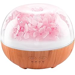 - PRESERVED FLOWER — Real preserved blooms (no watering) keep their color for months, turning your diffuser into elegant décor and a memorable gift. NOTE: Minor variations in bloom color/shape occur naturally and make each piece unique ULTRASONIC AROMATHERAPY DIFFUSER - The body of the essential oil diffuser has a wood grain design, 300 mL water capacity supports overnight use. Aromatherapy can relax nerves and relieve fatigue, which is an excellent choice for ultrasonic aromatherapy 7-COLOR AMBIENT LIGHT - The air diffuser cycle through 7 colors or set one via the light button. The aromatherapy diffuser suitable for bedroom and living room SAFE PROTECTION DESIGN - BPA-free material and auto shut-off riskless design, working with low noise perfect for night use add extra essential oil to increase your sleep quality EASY USE ULTRASONIC HUMIDIFIER - The small aroma diffuser only controlled by one button. This is a thoughtful pick for birthdays, anniversary, Halloween, Christmas, etc. 100% RISK FREE PURCHASE - Buy with confidence: 30-day money-back and 12-month limited warranty on the diffuser. Please feel free to contact us if you have any issues